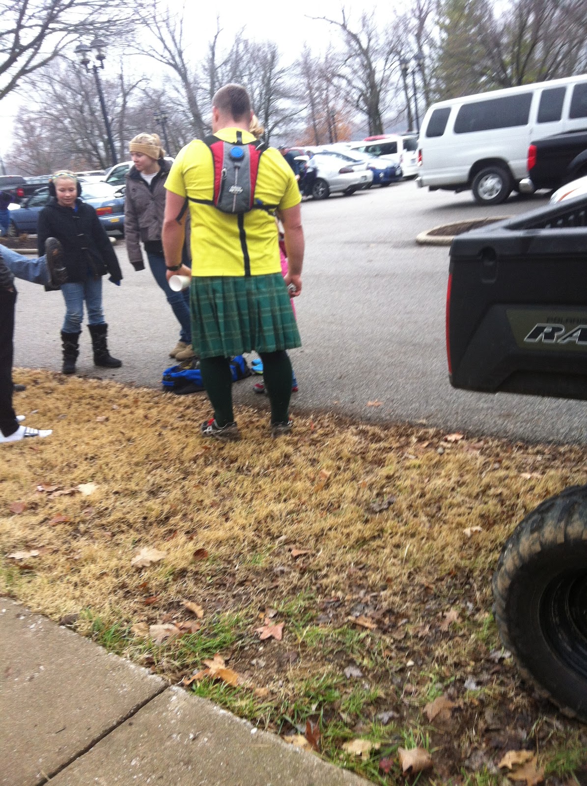 I start to recognize where I am at and a volunteer says "it is less than a mile". Oh boy.... Did I have anything left after that stupid sprint when I thought I was done? The answer is YES. I saw two people ahead of me. One was a guy in a kilt, there was no way I was gonna let him beat me. The other was a girl from my wave. We had been playing tag all day. I start to hear "Eye of the Tiger" in my head. Admit it, the song moves you too.